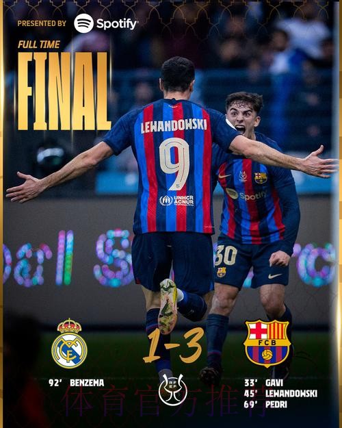 西超杯-莱万加维均传射佩德里建功!巴萨3-1皇马夺冠
